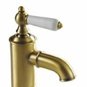 Назначение: для умывальника • Конструкция: однорычажный • Монтаж: горизонтальный • Клапан: керамический • Материал: латунь, покрытие - бронза • Подводка: гибкая • Монтажные отверстия: 1 отверстие • Форма излива: традиционная • Душевая лейка в комплекте: нет • Аэратор: есть • Донный клапан в комплекте: есть