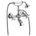 Назначение: ванна+душ • Конструкция: с раздельными клапанами • Монтаж: горизонтальный • Материал: покрытие - хром • Монтажные отверстия: 2 отверстия • Форма излива: традиционная • Душевая лейка в комплекте: есть • Держатель для душевой лейки: на смесителе