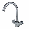 Назначение: кухонный • Конструкция: двухрычажный • Монтаж: горизонтальный • Клапан: керамический • Материал: латунь, покрытие - хром • Подводка: гибкая • Монтажные отверстия: 1 отверстие • Форма излива: традиционная • Душевая лейка в комплекте: нет • Аэратор: есть • Донный клапан в комплекте: есть