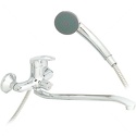 Назначение: универсальный • Конструкция: однорычажный • Монтаж: вертикальный • Клапан: керамический • Материал: латунь, покрытие - хром • Подводка: жесткая • Монтажные отверстия: 2 отверстия • Форма излива: традиционная • Душевая лейка в комплекте: есть • Держатель для душевой лейки: настенный держатель • Аэратор: есть • Донный клапан в комплекте: есть