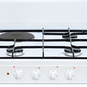 Тип конфорок: комбинированные • Рабочая поверхность: эмаль • Размеры (ШxВxГ): 500x127x520 мм • Цвет: белый • Электрические конфорки: всего - 1 • Газовые конфорки: всего - 3 • Тип управления: механическое • Переключатели: поворотные • Максимальная потребляемая мощность: 1700 Вт • Комплектация: решетка