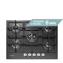 газовая на 5 конфорок • закаленное стекло • мощность: 10800 Вт • автоматический электроподжиг • газ-контроль • решетки: чугун • независимая установка • размеры (ШхГ): 70x52.5 см