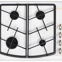 Поверхность: варочная панель • Тип поверхности: газовая • Рабочая поверхность: эмаль • Число конфорок: 4 • Установка: независимая • Газовые конфорки: всего - 4 • Газ-контроль конфорок: есть • Тип управления: механическое • Переключатели: поворотные • Электроподжиг: есть, автоматический • Размеры: 590x510x95 мм • Размер ниши для встраивания: 554x494 мм • Цвет: панель - белый
