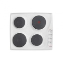 Индукционные конфорки - Нет, Дизайн ДОМИНО - Нет, Функция автоматического закипания - Нет, Тип варочной панели - Электрическая, Ближняя правая конфорка - 1000, Установка - Независимая, Глубина встраивания - 48.6, Количество конфорок быстрого разогрева - 1, Тип управления - Механическое, Материал рабочей панели - Эмаль, Дисплей - Нет, Количество электрических конфорок - 4, Ширина встраивания - 56.2, Высота - 8, Расположение панели управления - Сбоку, Максимальная потребляемая мощность - 5500, Ширина - 59, Цвет - Белый, Ближняя левая конфорка - 1500, Всего конфорок - 4, Блокировка панели управления - Нет, Дальняя левая конфорка - 1000, Дальняя правая конфорка - 2000, Количество чугунных конфорок - 4, Вес - 12, Глубина - 52