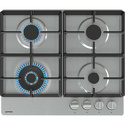 Поверхность: варочная панель • Тип поверхности: газовая • Рабочая поверхность: эмаль • Число конфорок: 4 • Установка: независимая • Газовые конфорки: всего - 4 (1 конфорка "Двойная корона") • Газ-контроль конфорок: есть • Тип управления: механическое • Переключатели: поворотные • Электроподжиг: есть, автоматический • Размеры: 600x520x130 мм • Размер ниши для встраивания: 560x490 мм • Цвет: панель - черный