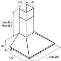 Установка: каминная пристенная, 60 см • Установка: каминная • Режимы работы: отвод • Производительность: 650 м /ч • Потребляемая мощность: 176 Вт • Регулировка мощности: 3 скорости • Тип управления: механическое • Переключатели: кнопочные • Тип ламп: галогенная лампа • Мощность одной лампы: 28 Вт • Количество ламп: 2 • Диаметр отводного патрубка: 150 мм мм • Размеры (ШxВxГ): 600x665x450 мм
