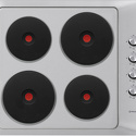 Поверхность: варочная панель • Тип поверхности: электрическая • Рабочая поверхность: нерж.сталь • Число конфорок: 4 • Установка: независимая • Электрические конфорки: чугунные; всего - 4 (4 конфорки быстрого разогрева) • Конфигурация электрических конфорок: 2 x 145 мм 1500 2 x 180 мм 1500 • Тип управления: механическое • Переключатели: поворотные • Максимальная потребляемая мощность: 6000 Вт