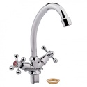 Назначение: кухонный • Конструкция: двухрычажный • Монтаж: горизонтальный • Материал: покрытие - хром • Подводка: гибкая • Монтажные отверстия: 1 отверстие • Форма излива: традиционная • Душевая лейка в комплекте: нет