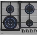 Подробная информация о конфорках1 тройная круглая конфорка (4,00 кВт) 1 быстрая горелка (2,8 кВт)1 средняя горелка (1,75 кВт)1 вспомогательная горелка (1 кВт)