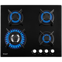 газовая на 4 конфорки • закаленное стекло • мощность: 7500 Вт • автоматический электроподжиг • газ-контроль • решетки: чугун • независимая установка • размеры (ШхГ): 60x51 см