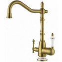 Назначение: кухонный • Конструкция: однорычажный • Монтаж: горизонтальный • Материал: покрытие - бронза • Монтажные отверстия: 1 отверстие • Форма излива: традиционная • Душевая лейка в комплекте: нет • Донный клапан в комплекте: есть